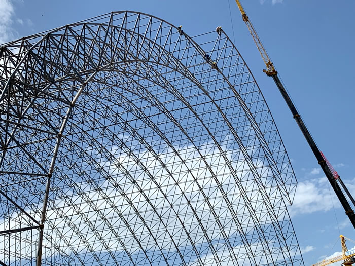 (2)网架加工前应对现场尺寸进行复测,确认无误后方可进行加工、安装;网架制作、运输、安装应遵守《空间网格结构技术规程》JGJ7-2010、《钢网架长宁螺栓球节点》JG/T 10-2009、《钢网架长宁螺栓球节点用高强度螺栓》 GB/T 16939-2016、《长宁钢结构长宁工程长宁施工规范》 GB50755-2012、《长宁钢结构长宁工程施工质量验收标准》 GB50205-2020。